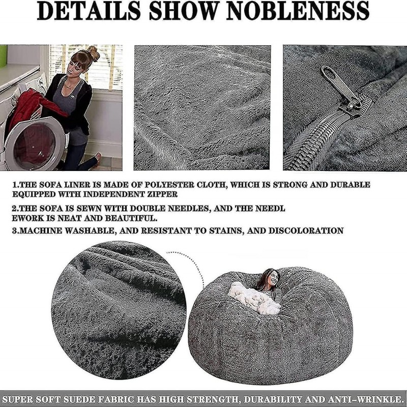 Die Sitzsackbezüge sind strapazierfähig und ultraweich; Wir haben den Stoff durch ein dickeres, luxuriöseres Material aufgewertet, das den Belastungen der Zeit standhält. (Ohne Füllung) - Maße: 135 x 65 cm, 150 x 75 cm. (Ohne Füllmaterial) – Hergestellt aus verbessertem Mikrosamt, dicker, weicher, bietet ein superweiches und seidiges Griffgefühl, lässt sich leicht abnehmen und waschen, ist verschleiß- und schmutzabweisend und für eine lange Lebensdauer ausgelegt. (Ungefüllt) – Ersetzen Sie Ihr aktuelles Sofa durch diesen äußerst bequemen Sitzsack, der eine moderne Ergänzung für Ihren Wohnraum darstellt. Wir bieten eine große Auswahl an luxuriösen Poufs, die perfekt in Ihren Wohnraum passen. (Ungefüllt) – Von kleinen Sitzsäcken bis hin zu riesigen, langen Sitzsäcken sind diese luxuriösen Stühle die perfekte Ergänzung für jeden Keller, jedes Wohnzimmer, Schlafzimmer oder Gästezimmer, ob als bequemer Lernplatz oder als Gaming-Stuhl. Sitzsäcke für Erwachsene, Jugendliche und Kinder.