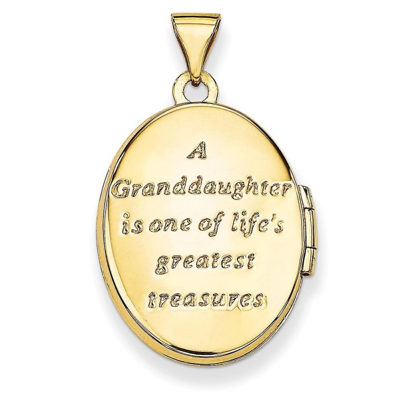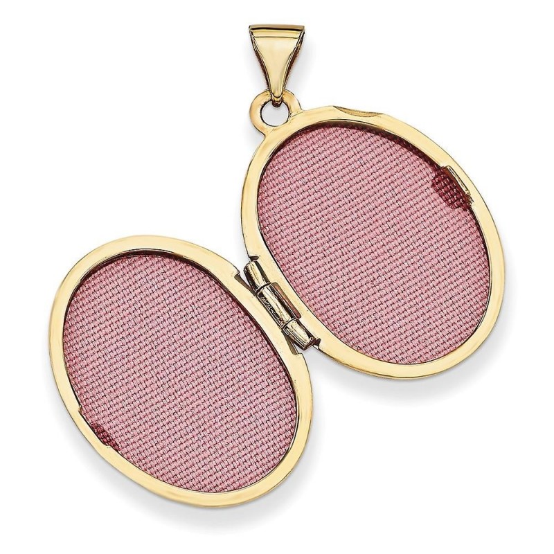 Poliertes 14 Karat Gelbgold. Enthält 2 Fotos. Gefühl auf der Rückseite. Mit ovalem Medaillon.