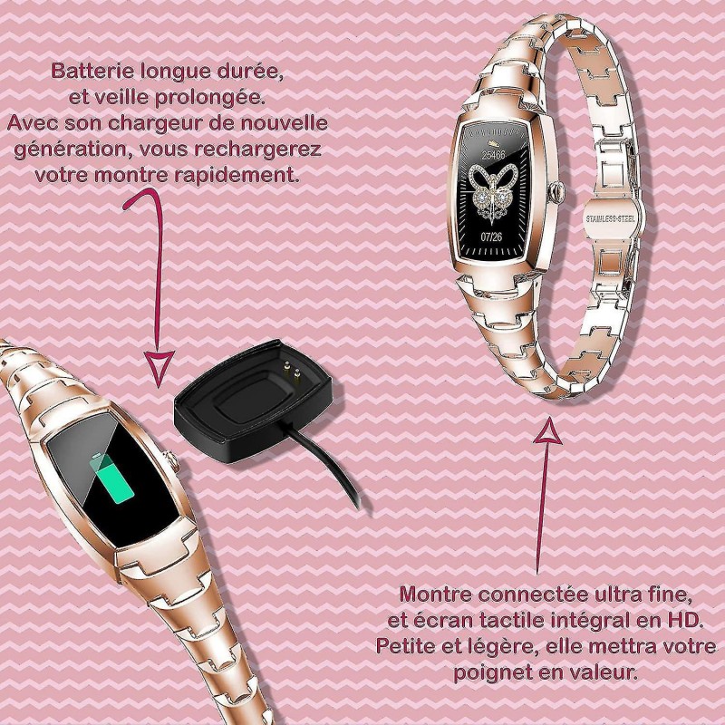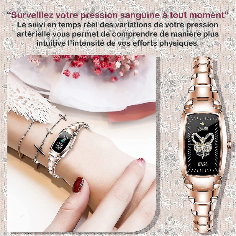 Smartwatch und Gesundheitstracker Mit der Smartwatch können Sie ganztägige Aktivitäten wie Schritte, zurückgelegte Distanz, verbrannte Kalorien, Herzfrequenz, Schlafstatus und vieles mehr genau aufzeichnen. Diese Smartwatch unterstützt mehrere Sportmodi. Etwas, das Sie den ganzen Tag lang motiviert. Diese Smartwatch ist eine tolle Geschenkoption. Anruf- und Nachrichtenbenachrichtigungen: Diese Smartwatches (Roségold oder Silber) vibrieren, wenn Sie eingehende Anrufe oder Nachrichten (Facebook, Twitter, WhatsApp, Line, Skype, Twitter, WeChat usw.) erhalten. Sie können den Inhalt der Nachricht direkt auf der Uhr sehen. Wenn Sie beschäftigt sind, können Sie Anrufe direkt beenden. Diese stilvollen, hochtechnologischen, wasserdichten IP67-Damenuhren verfügen über die intelligentesten Funktionen auf dem Markt, darunter synchronisierte Wettervorhersagen, Bewegungserinnerungen, einen vibrierenden Wecker sowie vollständige Musik- und Kamerasteuerung. Ihr Telefon über Zifferblatt, Stoppuhr, Helligkeitseinstellung (heben Sie Ihr Handgelenk, um den Bildschirm aufzuhellen), magnetisches Schnellladen usw. Mehr als nur eine Damenuhr. Diese Smartwatch verwendet einen 1,09 Zoll (2,54 cm) großen IPS-HD-Touchscreen und ist aus Edelstahl gefertigt, um Ihnen ein besseres Erlebnis zu bieten – und das alles für einen stilvollen Look. Blutdruck, Blutsauerstoffgehalt und Menstruationszyklus sind ebenfalls Teil der Apps dieser Uhr, sodass Sie eine vollständige Nachverfolgung erhalten. Lange Akkulaufzeit und breite Kompatibilität. Die Bluetooth-Uhr für Damen ist kompatibel mit Android 4.4 oder iOS 8.0 und höher (Bluetooth 4.0 oder höher erforderlich), nur für die Verbindung mit Smartphones geeignet, nicht für PC, iPad, Tablet. Scannen Sie den QR-Code oder laden Sie die App „F Fit“ aus Ihrem mobilen App Store herunter/installieren Sie sie. Öffnen Sie es und schalten Sie Bluetooth ein. Klicken Sie auf „Gerät hinzufügen“ und wählen Sie Ihre Uhr aus. Genießen